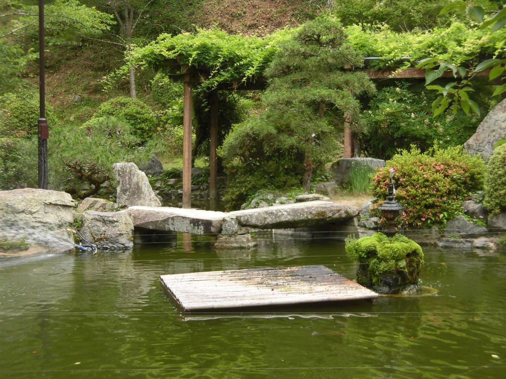 私のふるさと、西岩国にあるお城山麓にある吉香公園内の池、噴水があり、小さな池ですが、藤棚や紫陽花があります。