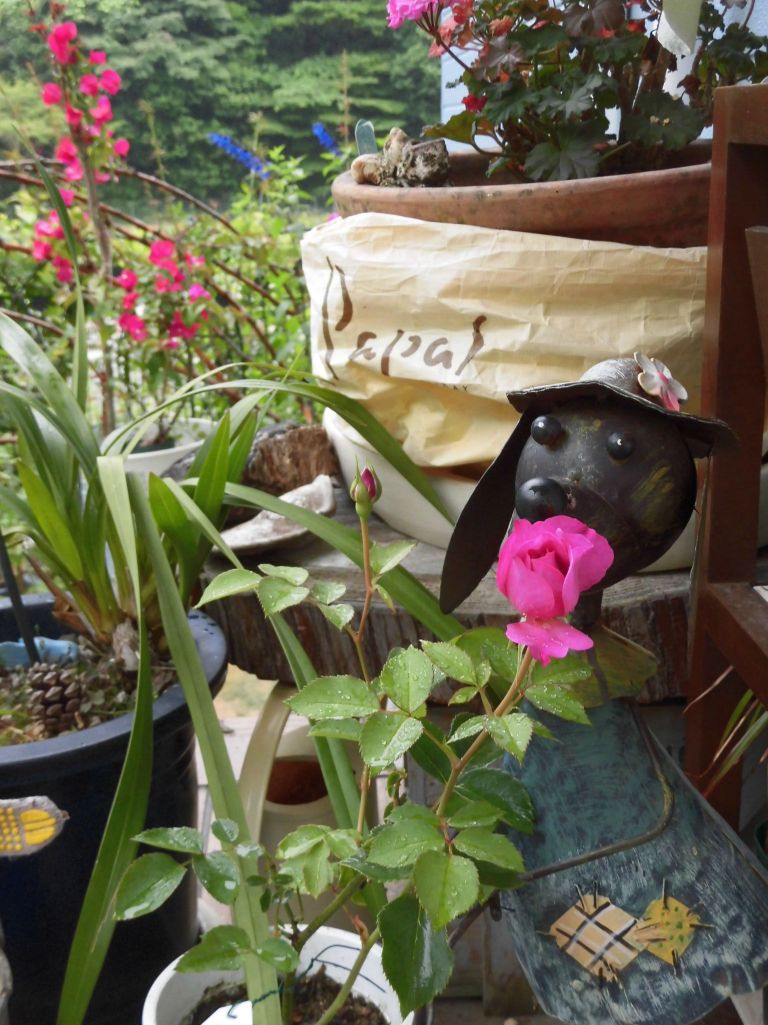 柳井フラワーランド!での勉強会に薔薇友3人で参加して、小山内先生より頂いた薔薇(名前はまだ、ついていなかった)かな、フィネスと判明 挿し木ですが、開花しました。嬉しいわ!とても良い香りです。