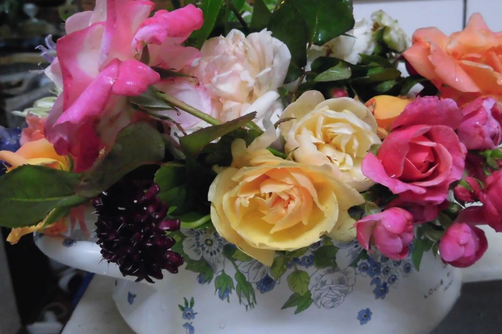 庭のお花たちが雨に打たれ・・・お鍋に避難・・・