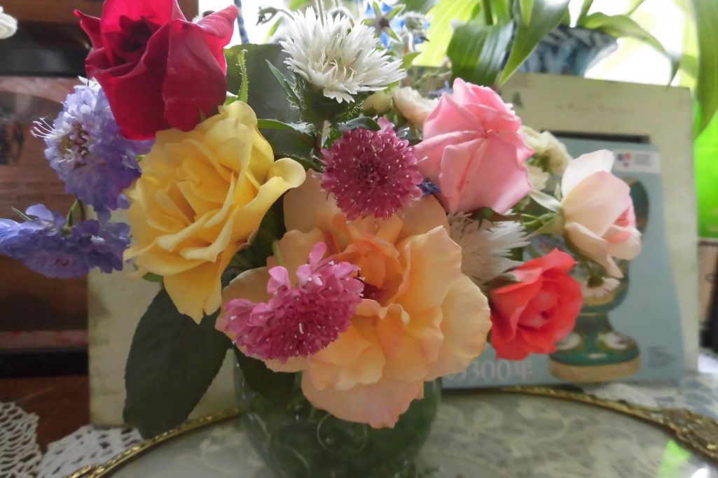 今日の薔薇は私のために活けました。暑さの中、か弱そうだけど、凛々しく!