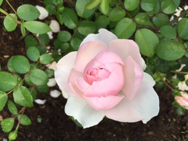 ベビーピンクのかわいいバラ。 あまりにやさしくて、照りつける太陽の下でかわいそうになります。