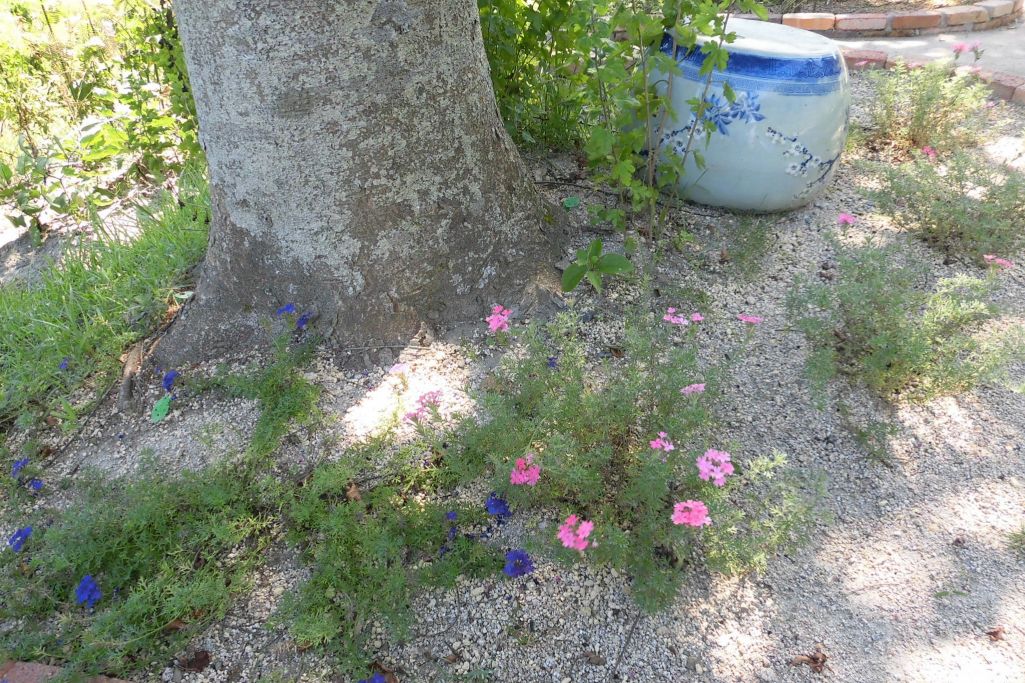 ケヤキの根元にはタピアンと小菊を植えてますが、今年の暑さでカラカラ