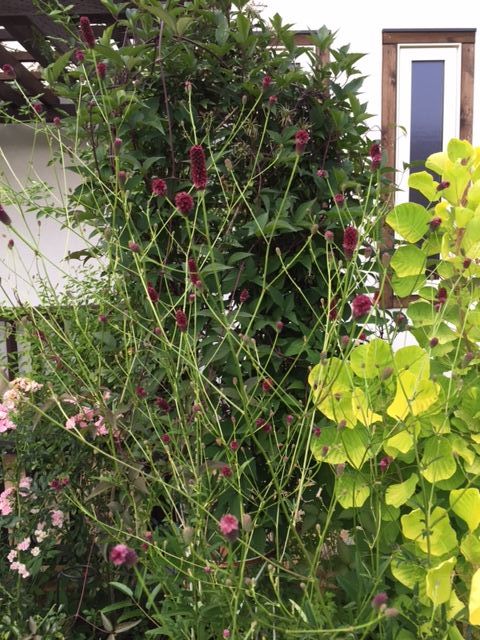 好きな吾亦紅、ツンツン伸びてるところが大好き!○○で何とも言えないです。わが家は土手にありますが、道行く方からの苦情で草刈りします。他へ少し移動して楽しんではいます。秋ももうすぐなんでしょうが、今年の夏は今までより厳しい暑さに植物たちも可哀想かな
