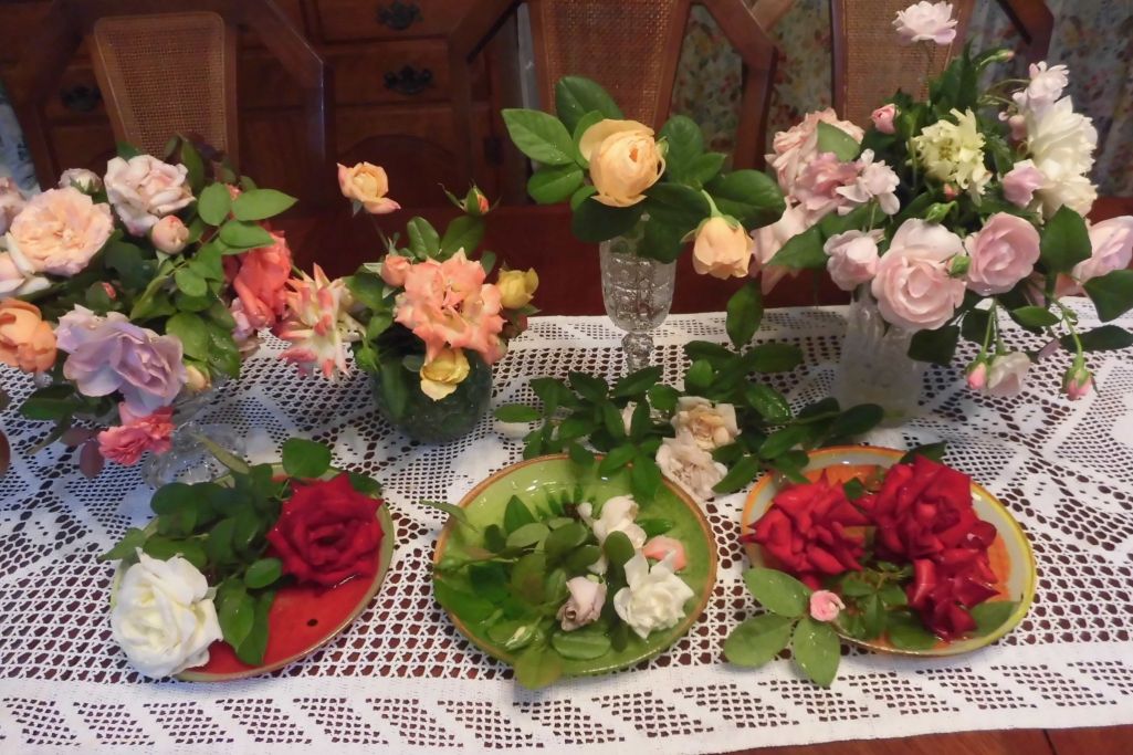 台風前、夏の剪定を少ししました。テーブルに並べ眺めて香りを楽しんでます。