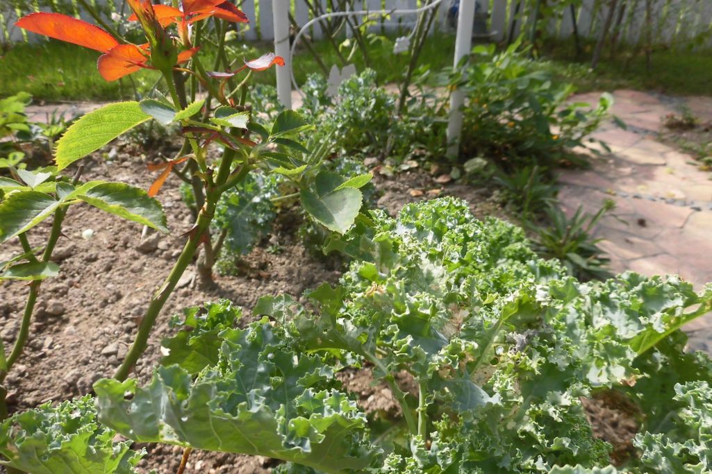 夏剪定の薔薇の側にはケールが元気良いです。