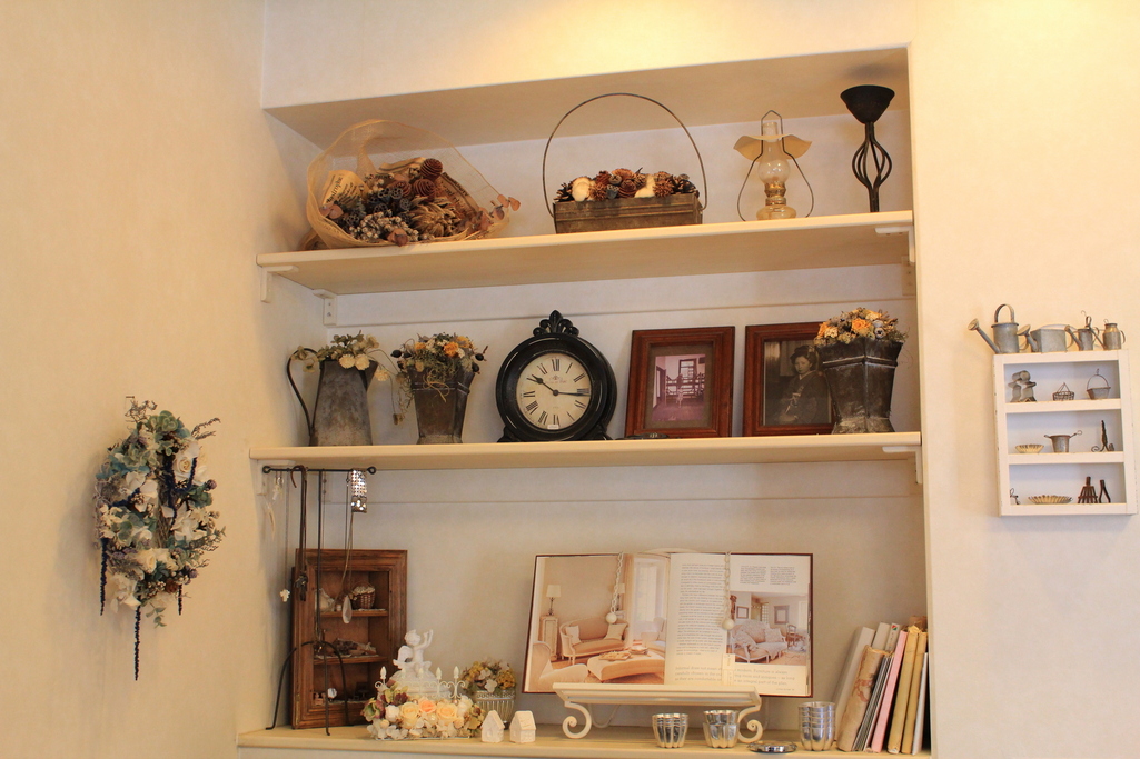 壁面にこういう飾り棚が欲しいです。作りたいな~!いつか出来るかな???