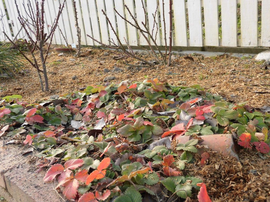 遊べる庭の薔薇の側に移動したワイルドストロベリー