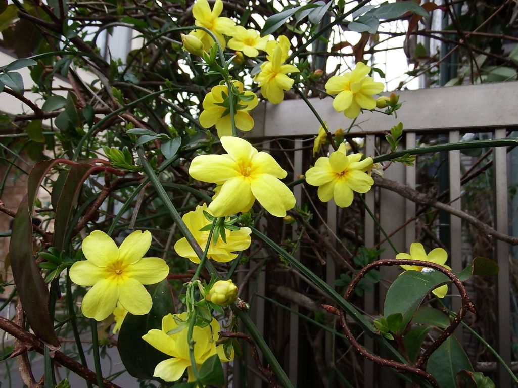 ラベルには迎春花「黄梅」と書かれているのですが、冬に葉が残っているので雲南黄梅のようです