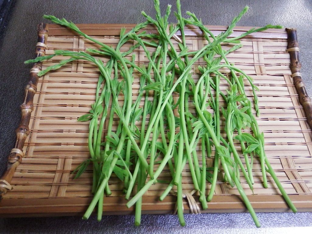 庭に植えてる春の山菜、アケビの新芽、少しですが採りました