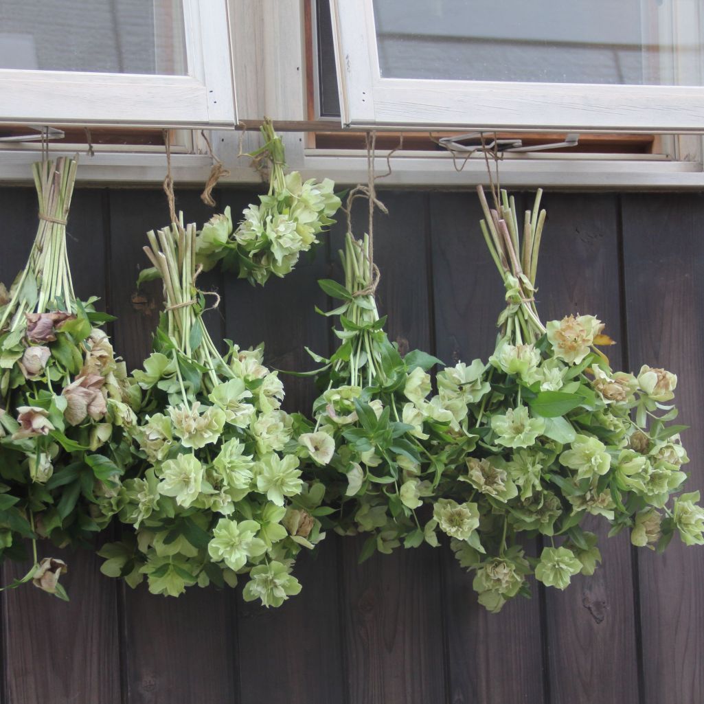良い感じのドライフラワーは、クリスマスローズならではのクリスマスリースに保存してますが、飾り方も絵になってますね。