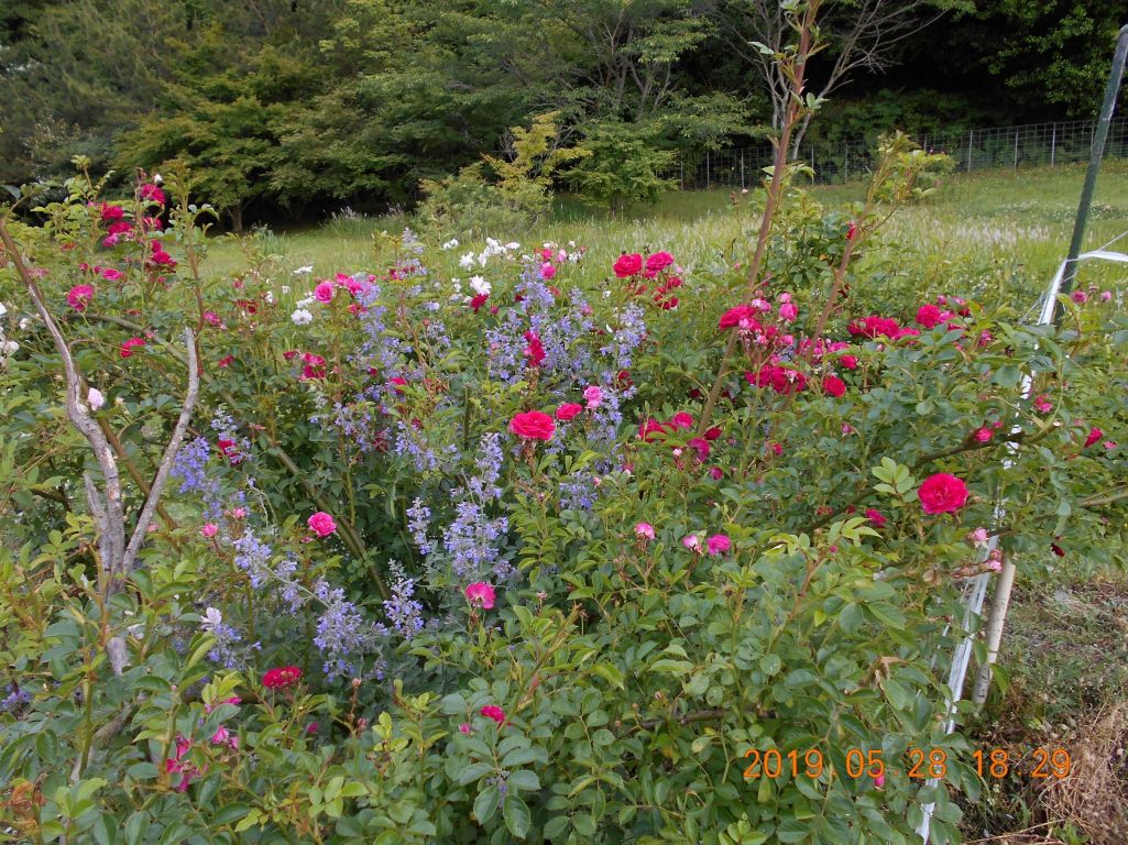減反部分にキングとポールズヒマラヤンムスク、キャットミントが色鮮やかに・・・