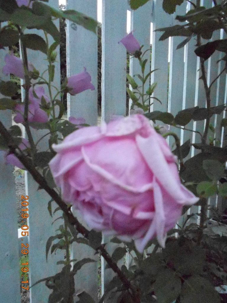 頭をもたげるラ・フランスと上向きのカンパネラ