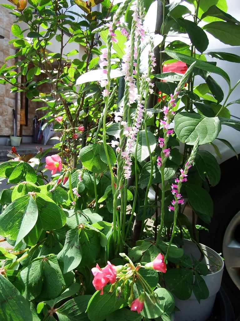 ネジバナとオキザリス・ラッキークローバー仲良く咲いてる