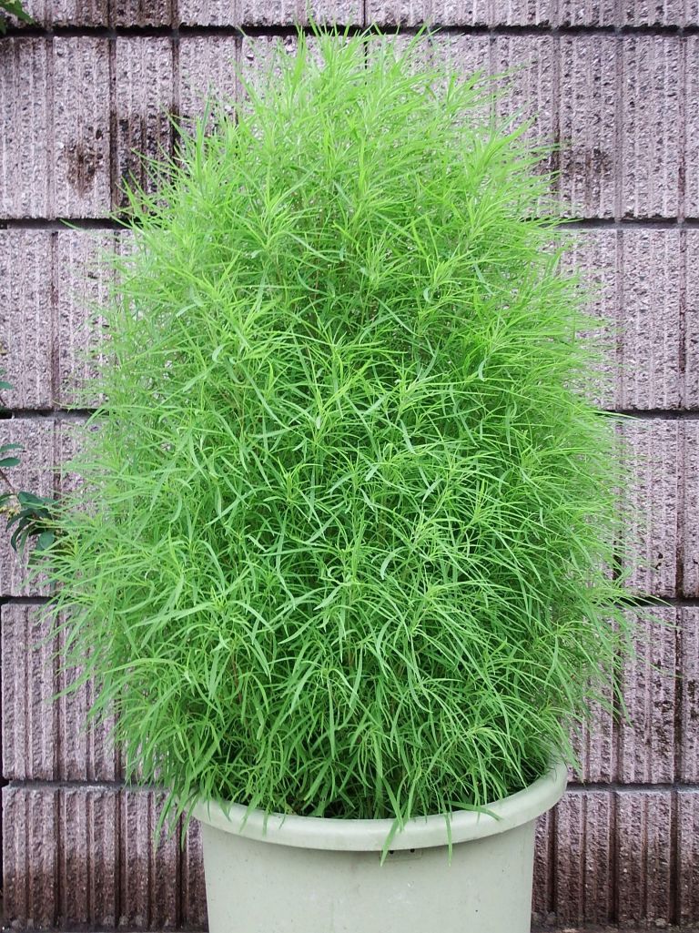 梅雨の時期、今頃の鉢植えのコキアです フワフワの葉が柔らかいです