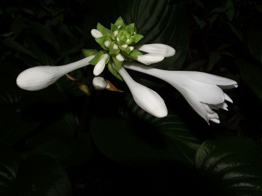 今宵、雪のように白い花が咲きました 八重咲のギボウシ、タマノカンザシです