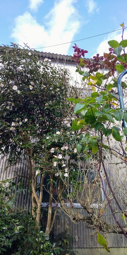 椿に負けない高さに伸びている薔薇はルイの涙!もうすぐ美しく誘引をやり直さないと・・・本当に沢山昨年はさいてくれました。今年はどうかしらね。