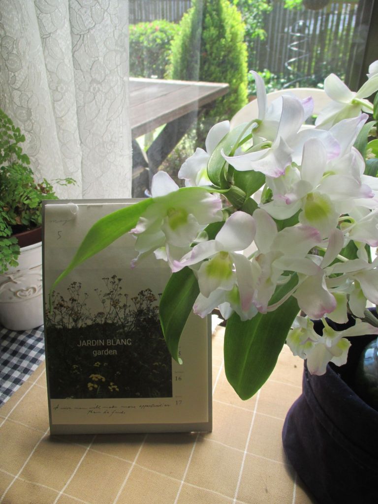 数年前に、神社の市で買ってきた小さな蘭だったのですが、今年も元気に咲いております。。。