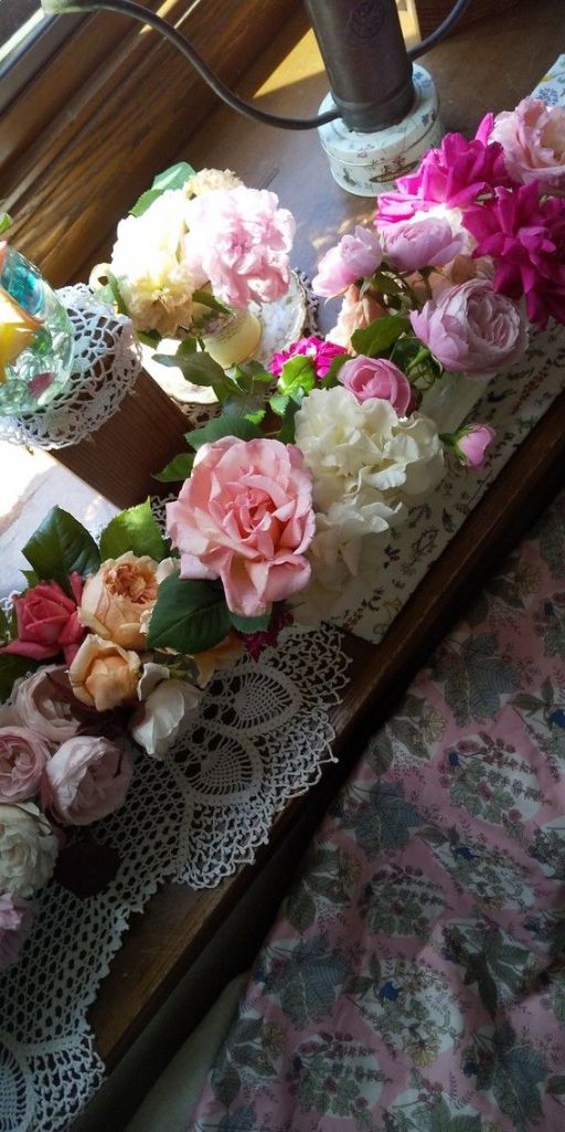 色々な薔薇、散りゆく前にカットしたのでお部屋で楽しみます。
