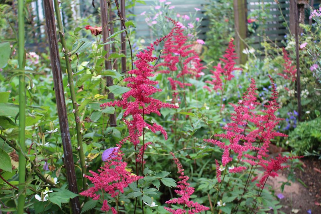 梅雨の時期に赤 色が鮮やかになるアスチルベ