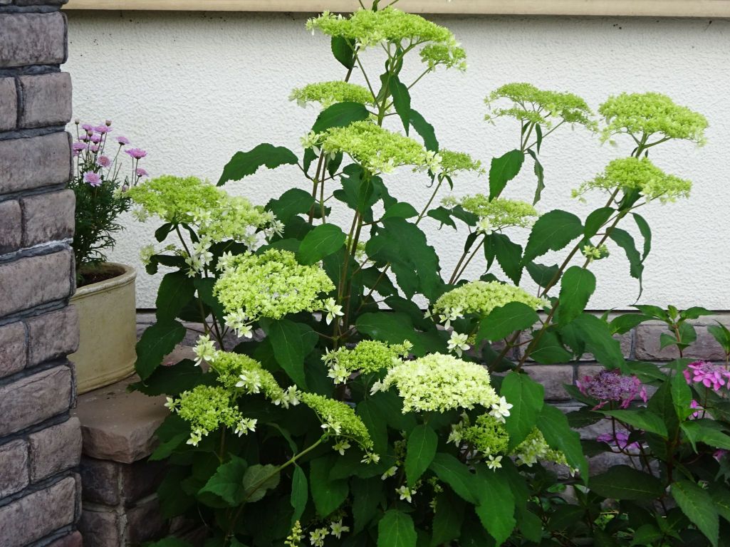 ヘイズスターバースト(八重咲きアナベル)・・グリーンから白へそしてグリーンヘと、外側から開花するので長~く楽しめます。
