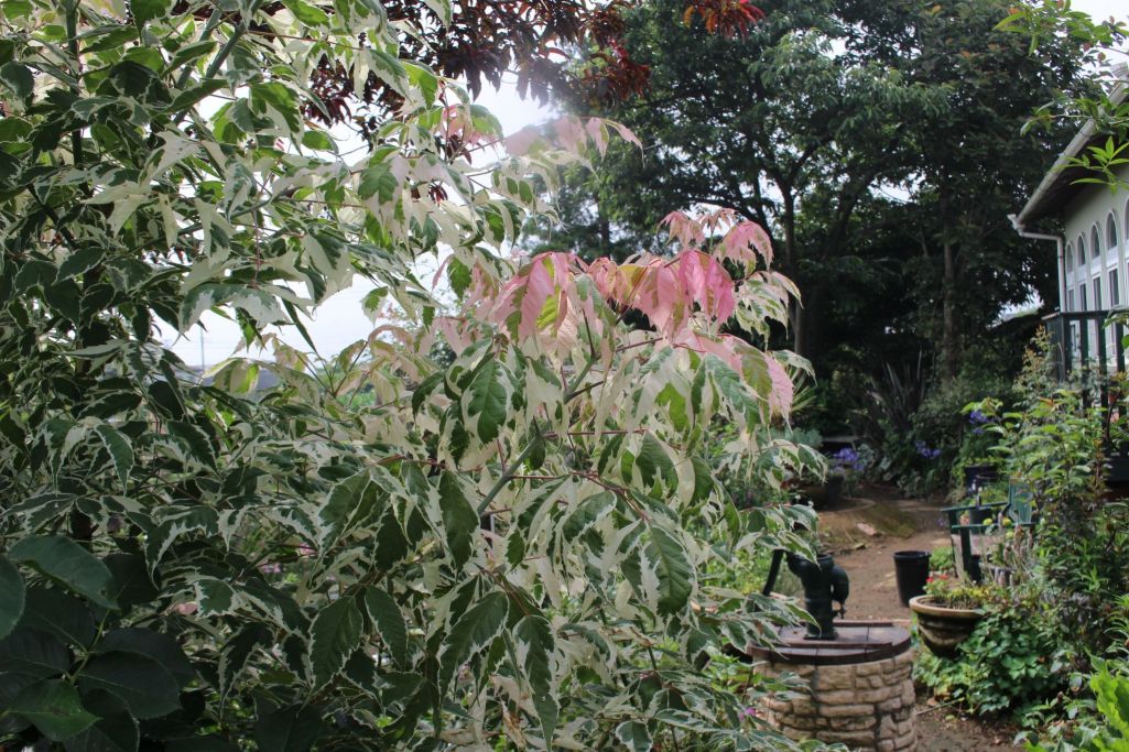 ピンク色に色づくネグントカエデ