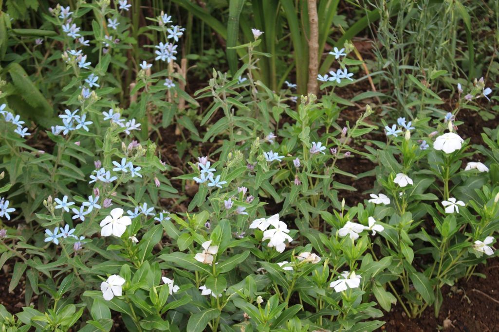 ブルースターと日々草 どちらも開花時期が長い花たちです。