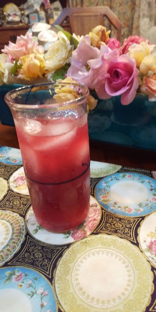 摘み取ったの葡萄でジュースです。炭酸で割ってすっきり! 夏薔薇は小さいけれど、可愛い!今日は雨だから、お部屋で楽しんでます。