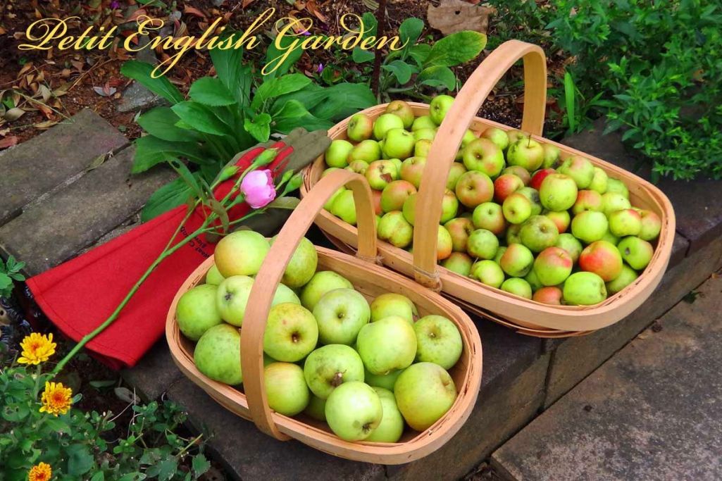 右の小さいのがアルプス乙女、左がフジです. ほとんどまだ青い林檎・・