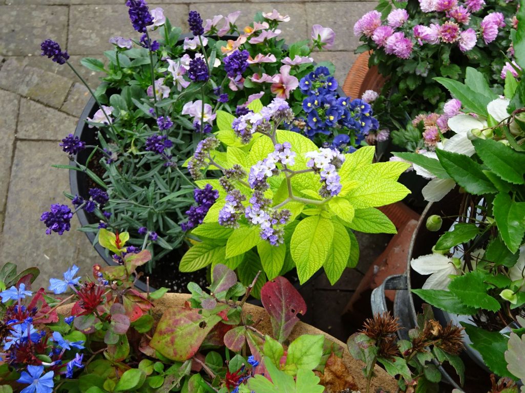 ヘリオトロープゴールデングロウ、 ネメシア、ラベンダーなど。