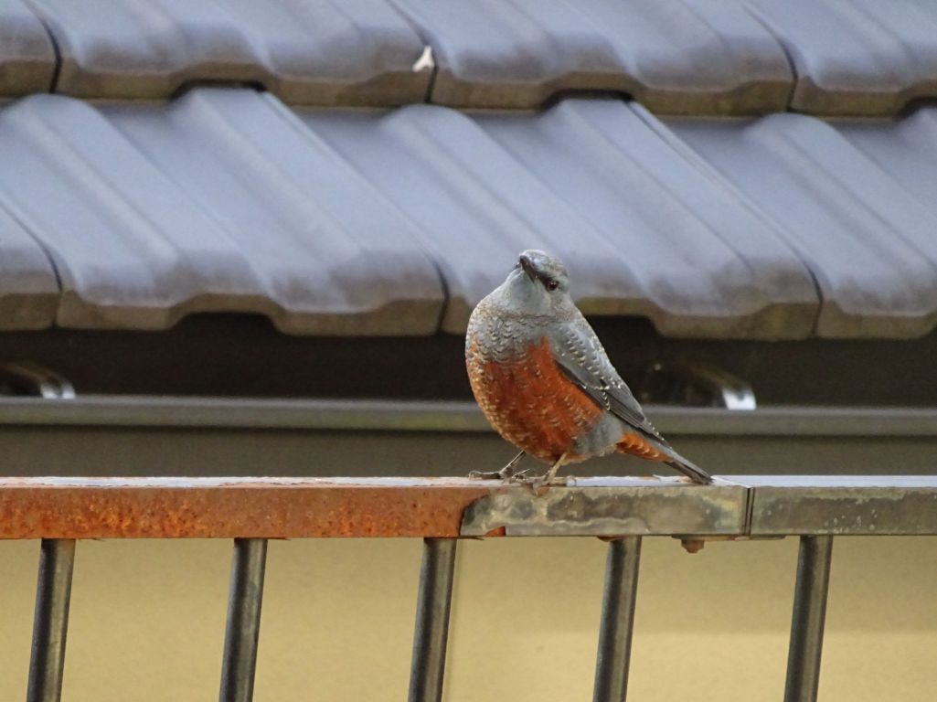 イソヒヨドリ♂。庭仕事をしているとジイッとこちらを見ています。恋の季節ももうすぐ、美声を聞かせてくれるのが楽しみです。