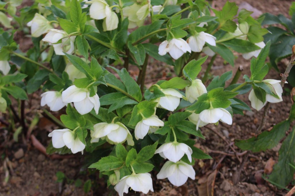 白い小花の水仙ペパーホワイト、と白のクリスマスローズが開花中です。