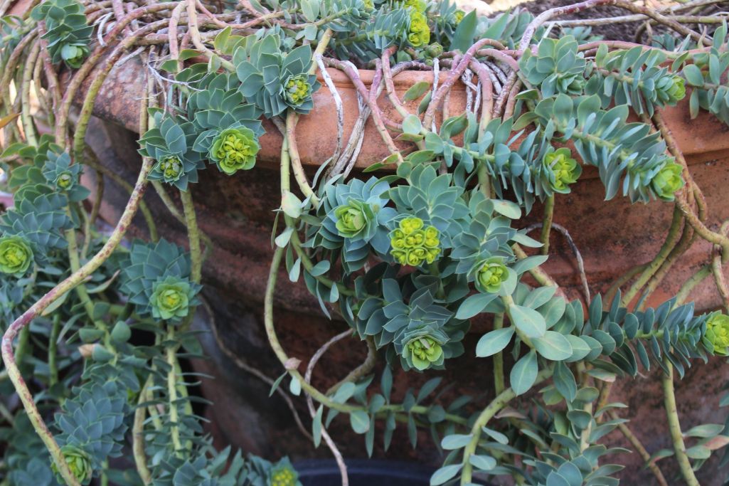 滝のようにしだれて咲くユーフォルビアです。