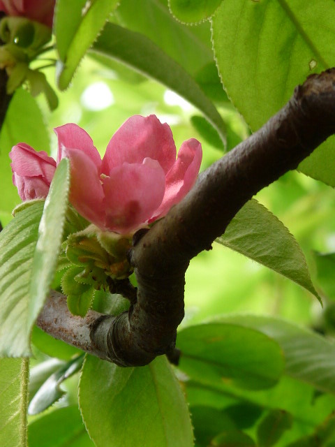 ホンマ可憐な花なんですが、カリンの木自身が結構大木にり、上部で上向きに咲くのであんまり見えませんっ!