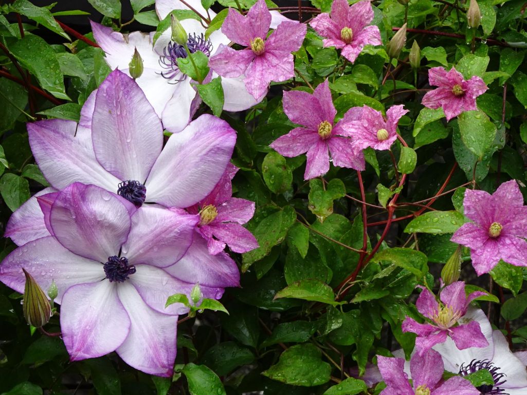 雨上がりのクレマチス フォンドメモリーズとカグヤ