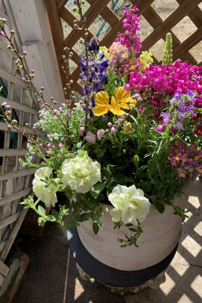 ニワザクラ リナリアフェアリーリップ 八重咲きペチュニア(パニエレモン) スイートアリッサム ナスタチューム(黄色) 傘葉ルピナス アーリールピナス(青花) ロベリア(リビエラ)