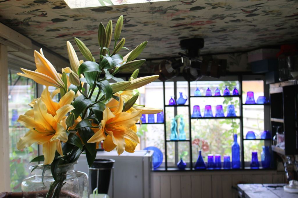 コテージに百合を生ける