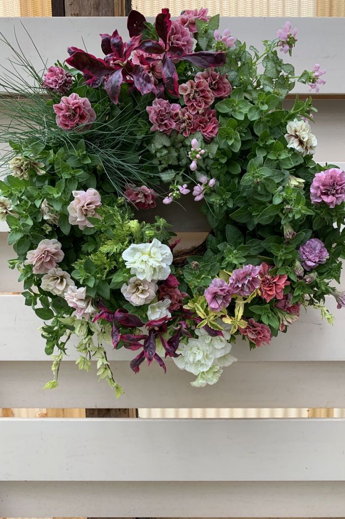 ☘️ペチュニアホイップマカロンと斑入りヨモギのギャザリングリース☘️