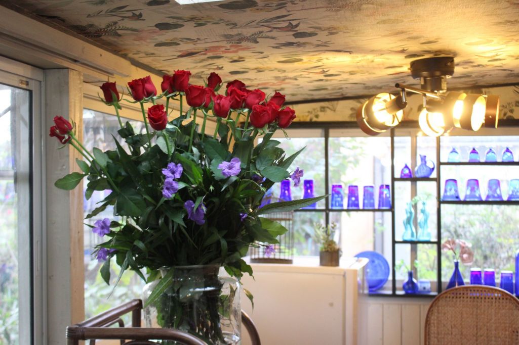 赤い薔薇を生ける