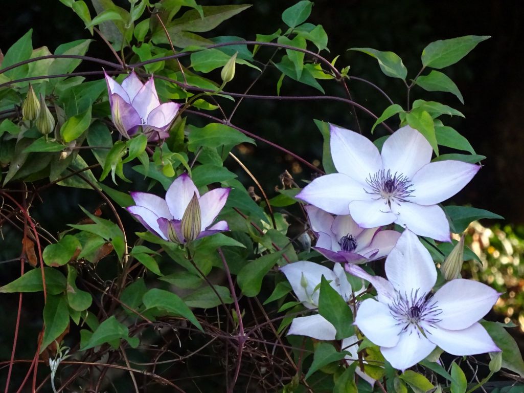 クレマチス・フォンドメモリーズ 酷暑にもめげず健気に咲きだしました。