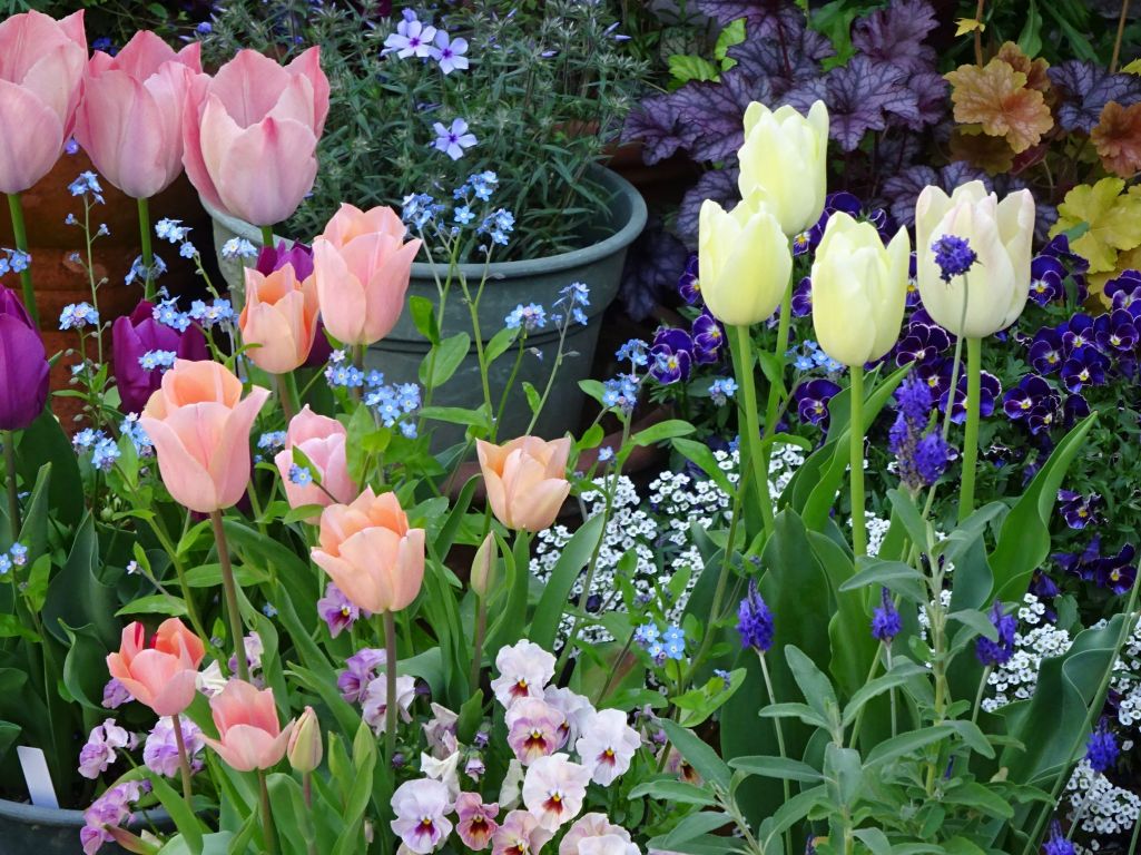 春爛漫 チューリップアプリコットビューティーが開花しました。ワスレナグサは種から。