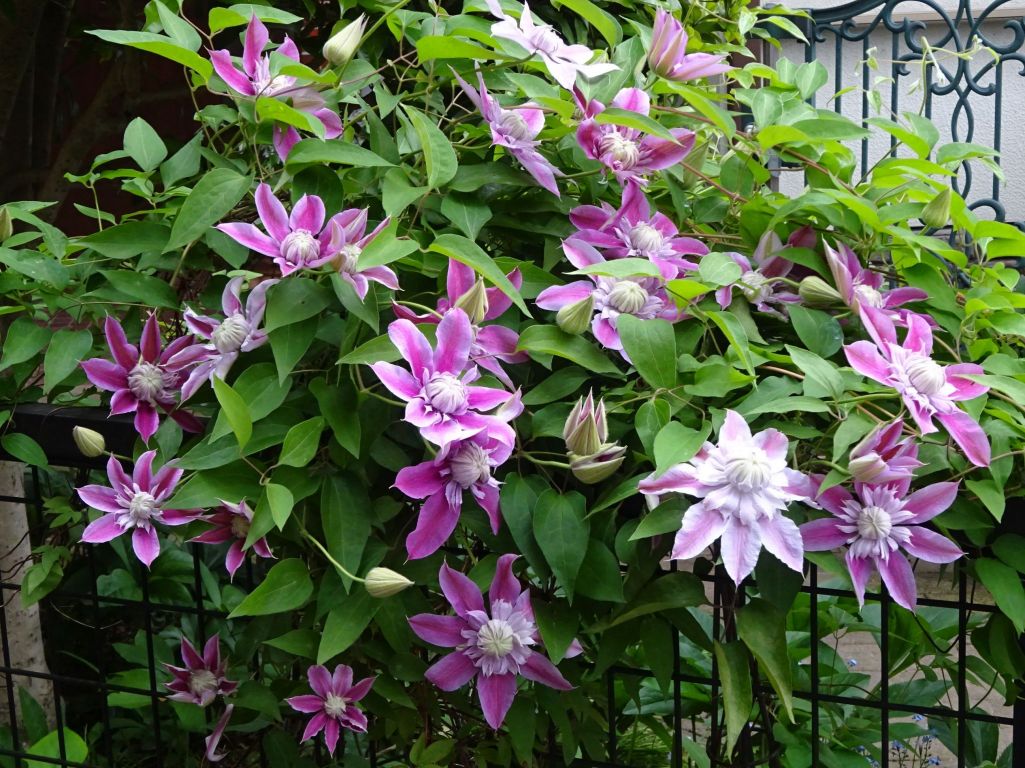 クレマチス ジョセフィーヌ 今年は特に花付きが良いようです(10年位前に植えました)