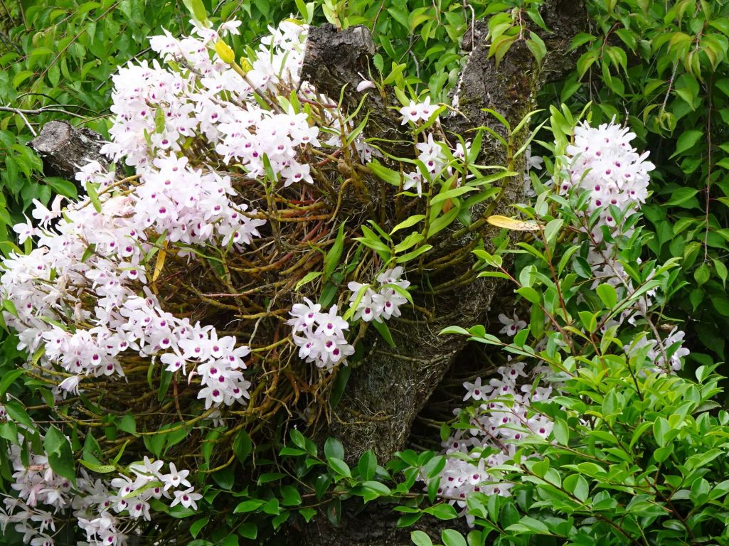 散歩の途中、枝垂れ梅に着生された見事な美しいセッコクを見つけました!