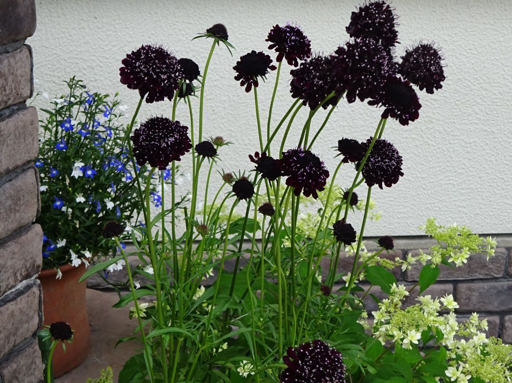 スカビオサブラックナイト・・・2か月近く、次々と咲き続けています。