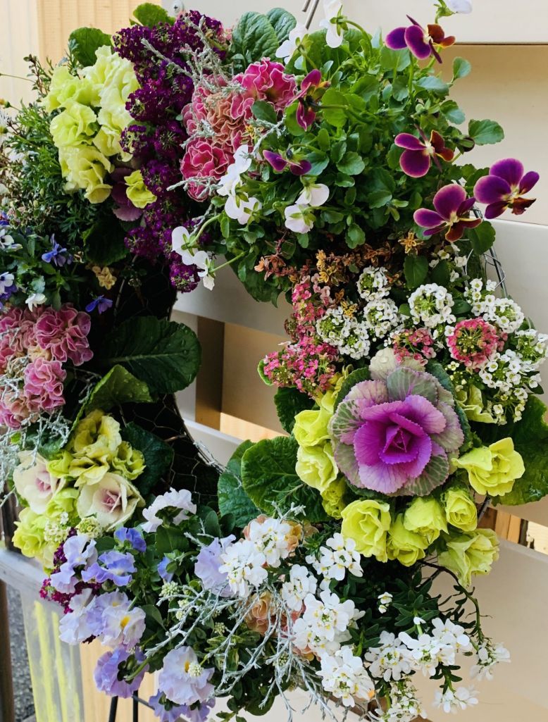 プリムラ、ビオラ、葉牡丹達のギャザリングリース