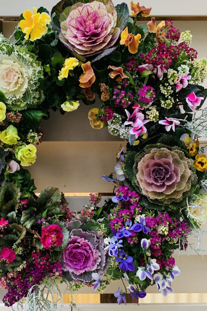 ♪葉牡丹、シクラメン、ビオラ、アリッサム、プリムラのギャザリングリース