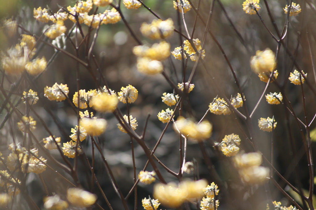 ミツマタって、ほんとに三つ又なんですよね、昔の人は見たまんまの名前をつけられたんですよね~(笑) お花はかわいいのに^^
