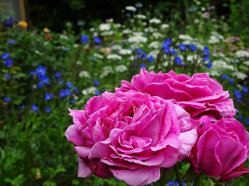 裏庭は、こぼれ種で広がった、オルレア、ニゲラが満開!丈夫で手間なし。これからしばらく楽しめます。