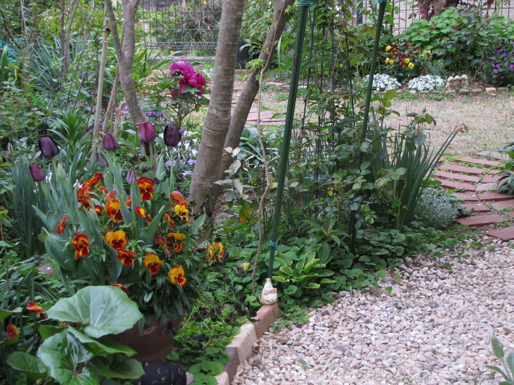 素敵な植栽のお庭ですね。ボルドーカラーのチューリップとボタン、同時期に開花でいいですね~。苗買いたい病、同病です。すぐに再発しますよ(笑) 私、京女どすえ~と言いたいところですが、福岡県、川筋女です。春と秋、そうだ京都行こう(桜、紅葉、仏像の旅)となります。