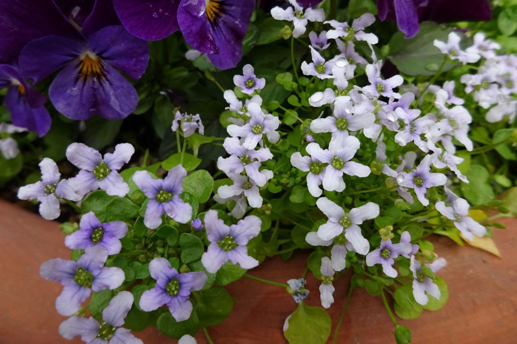 イオノプシジュウム(ヒメムラサキハナナ) 一度植えるとこぼれ種で次々と咲きます。ポルトガルが原産だとか?