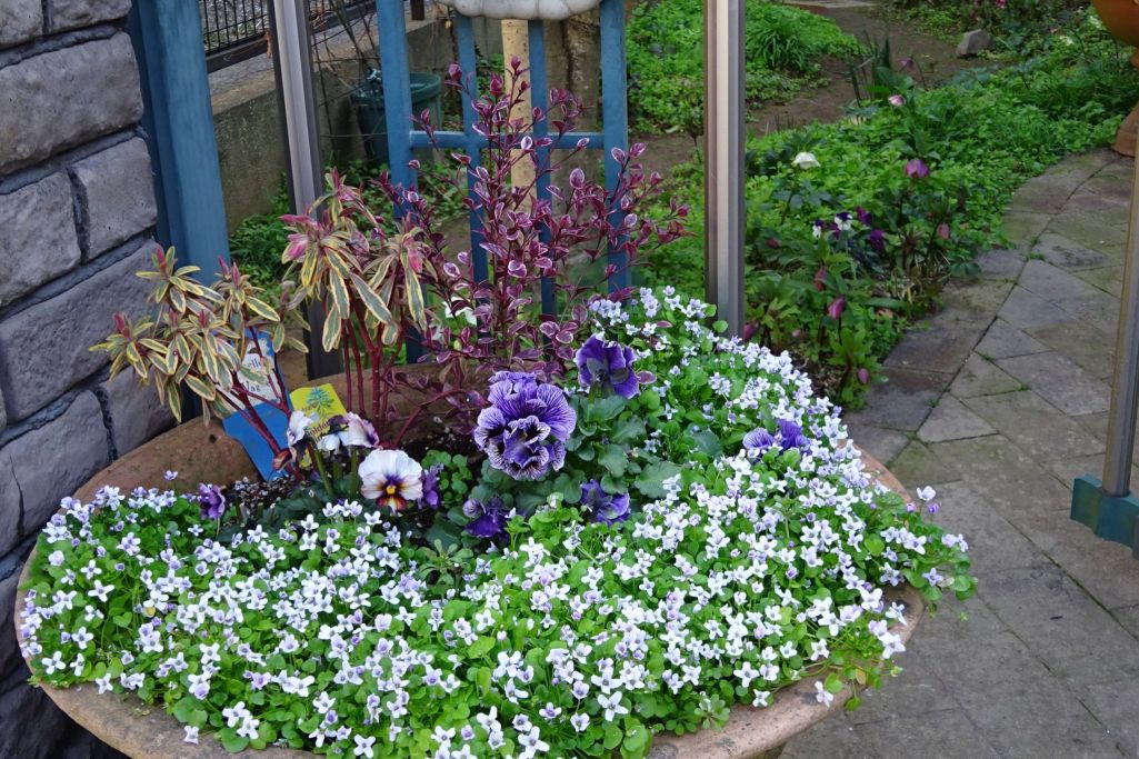 ドラキュラとヌーヴェルバーグ。 イオノプシジュウムも増えてビオパンを引き立ててくれます。 奥の道ではクリスマスローズが次々開花 ♪